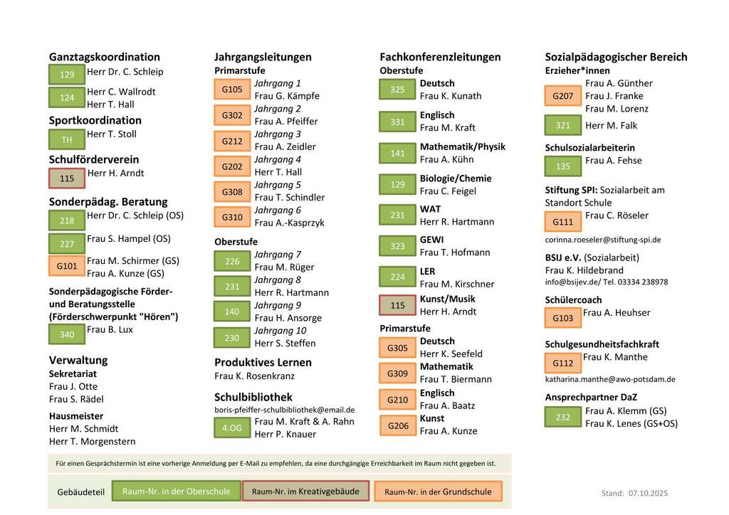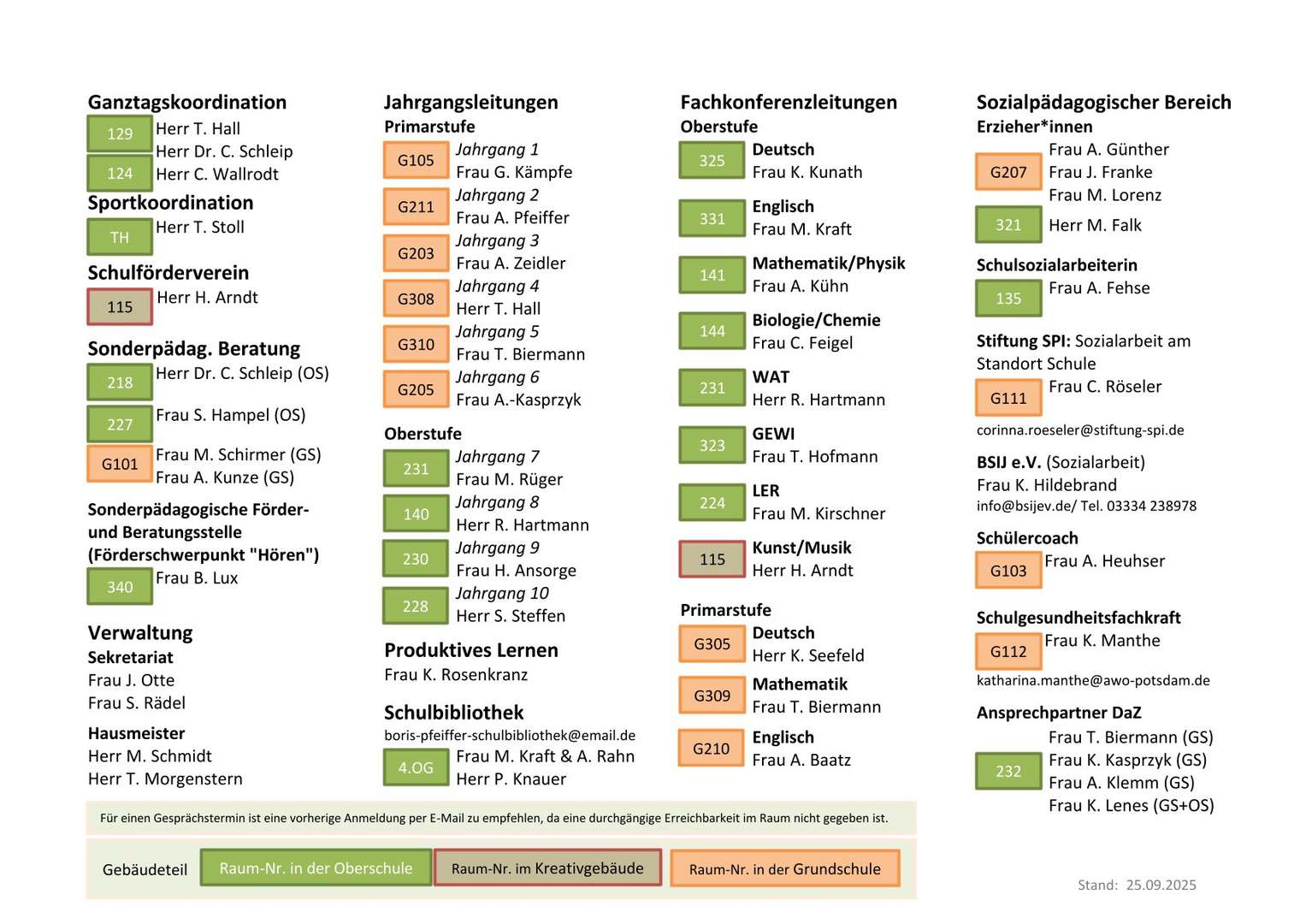 Für die Lehrkräfte und Angestellten, die im Organigramm fehlen, gibt es hier eine Komplettübersicht zur Kontaktaufnahme per Mail.